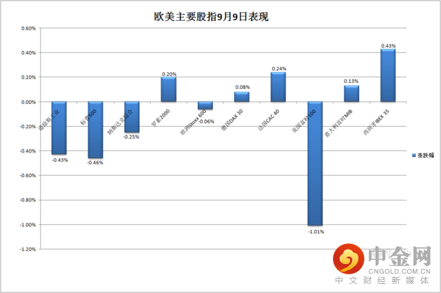 欧股方面,泛欧股指连续第三日收跌。欧洲斯托克600指数在欧央行决议公布后曾转涨,但尾盘转跌。主要欧洲国家股指周四涨跌各异,德法意股结束两日连跌,英股和西股分别连跌三日和两日,英股跌幅居首。