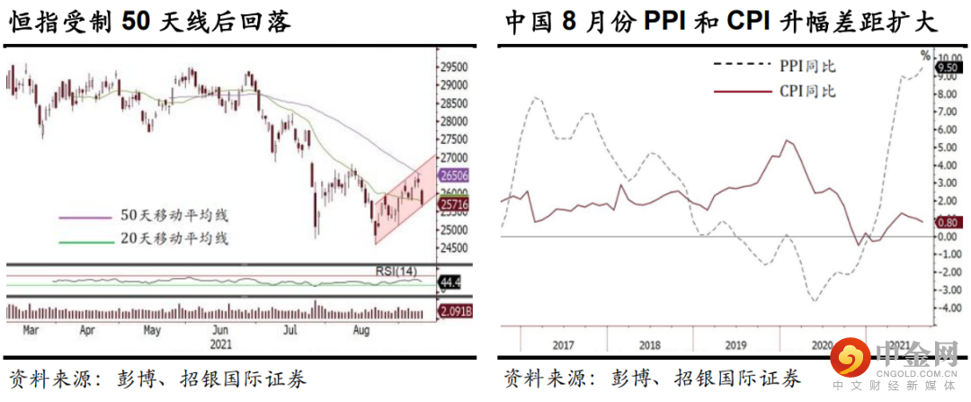 监管忧虑再起,科网股领跌。港股昨天急跌,内地政府前天约谈网络游戏企业,拖累游戏股昨天急跌,下午《南华早报》报道内地暂停审批新网络游戏(其后《南华早报》澄清只是放缓审批),更加剧跌势,被约谈的腾讯(700 HK)和网易(9999 HK)收市挫8.5%和11%,哔哩哔哩(9626 HK)跌8.9%。其他科网股亦普遍下挫,恒生科技指数跌4.5%,恒指跌605点或2.30%。大市成交升至1,660亿港元。资源股逆市升,铝价创13年新高,中国宏桥(1378 HK)飙升14%,内地动力煤价创新高,兖煤(1171 HK)升5.6%。昨夜美股下跌,标指及纳指分别跌0.46%及0.25%。美国上周新申领失业救济人数创疫情以来新低,美股早段曾上升,但其后忧虑疫情恶化而倒跌。图表上,恒指前天反弹至50天平均线遇阻,昨天急跌后,再次失守20天线,加上14天RSI再跌至50以下弱方,走势再度转弱,正测试短期上升轨之支持。假若监管风险持续,未来数周恒指可能再次下试7-8月份低位25,000以下。