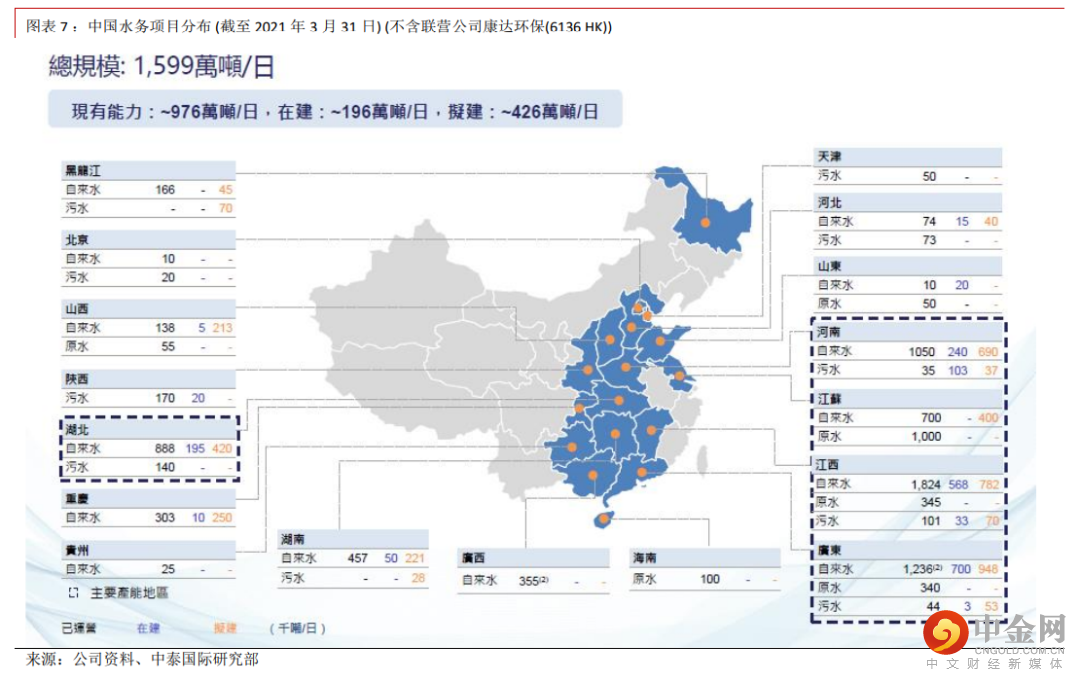 中国水务在全国持有不同自来水项目(见图表 7),原则上可以全面受惠于即将实施的供水价格新规则。根据我们了解,地方政府仍未向行业解释新规则实施详情或举办一些吹风会。待观察新政策在 10 月 1 日后的落实情况,我们将作出相应盈利预测调整。盈利预测原则上有望上调。我们目前因为更新了财务模型中的 2021 年财年数据,技术性小幅上调 2022-23 年财年盈利预测(见图表8)。