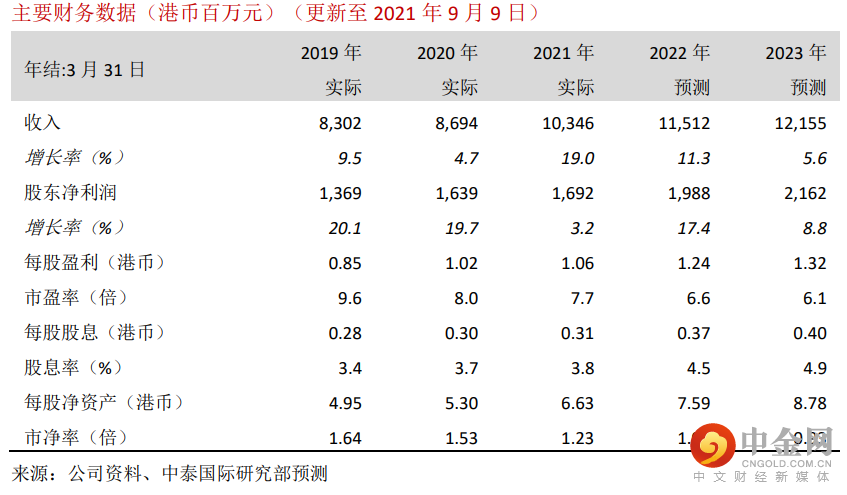 待观察新政策在 10 月 1 日后的落实情况,我们将作出相应盈利预测调整。盈利预测原则上有望上调。我们目前因为更新了财务模型中的 2021 年财年数据,技术性小幅上调2022-23 年财年盈利预测。我们相应将贴现现金流分析(DCF)推算的目标价由 9.60 港元提升至 9.80 港元(见图表 8、9、10),对应 7.9 倍 2022 年财年市盈率和 20.4%上升空间。重申“买入”评级。