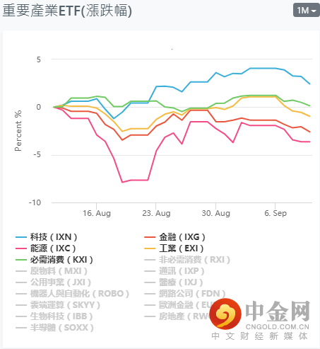 目前市场继续属于在低迷阶段中,经济数据喜忧参半以及美联储减码时间表不明的拖累。另外,美国8月份生产者价格指数升幅超预期,重新引发了对美联储何时会撤回刺激措施。同时,疫情持续蔓延破坏了经济复苏,推高了供应紧张引发的通货膨胀,但各国央行仍重申宽松货币政策立场。从目前ETF产业的表现,其趋势继续疲软拐头下行。短期关注:机器人与自动化( ROBO ),产业中个股的多头机会,其它产业以偏空关注其空头机会。