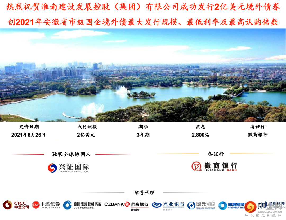 9月8日,作为联席账簿管理人,成功协助广发控股(香港)成功发行3年期3亿美元高级无抵押固息增信债券。广发控股(香港)凭借自身优良的信用资质以及南阳商业银行的备证增信,得到了投资者的坚定支持。本次交易3年期以初始价格指引T+115bps推出市场,最终票面利率1.125%,最终定价较初始价格指引大幅收窄42个基点,定价日当日峰值订单超30亿美元,认购超10倍。本次发行是广发控股(香港)成功发行的首单境外美元债,拓宽了公司中长期资金融资渠道,具有里程碑意义。