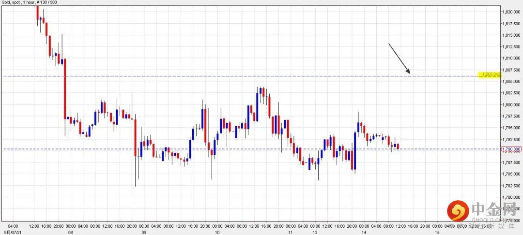 可以部署在$1,778美元左右建立好仓盘,短线看高金价一线至$1,806美元水平,止损在$1,770美元。