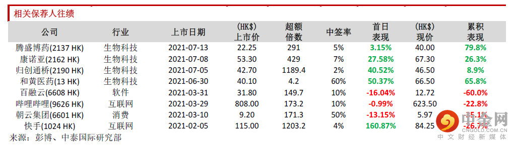 保荐人往绩:此次稳价人是高盛,2021年初至今共参与保荐项目15个,首日表现9涨5跌1平。