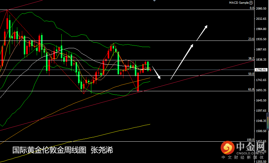 技术上:周线级别:金价本周初虽震荡止跌有所反弹,但力度甚小,短期仍未减弱上周遇阻回落的承压力量,持续运行在中轨及5-10周均线下方,暗示后市仍有再度回落的风险,不过鉴于100周均线及50%回撤线支撑较强,因而如有回落并触及,则是不错的入场看涨机会,博取中线的投资者则可等待稳健位置,日内短线投资者则关注日波幅的相对区间,以阻力或支撑交易即可。这样长期下来,总归是亏少赚多,保持稳定的收益。多头目标依然还是关注1835美元附近后1860美元。
