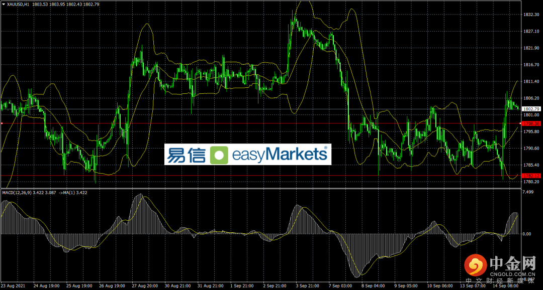 隔夜美国公布了8月未季调CPI年率录得5.3%,符合市场预期,而8月核心CPI月率录得0.1%,创今年2月以来新低,受此影响美元指数一度回落至92.25附近,好在因为美股下跌,市场对美元流动性需求升温,抄底美元资金流入,美元收复跌幅,目前在92.6附近徘徊。黄金在美元下跌,以及股市回落的支持下突破1802美元压力,最高触及1808美元附近,目前在1804美元附近交投。
