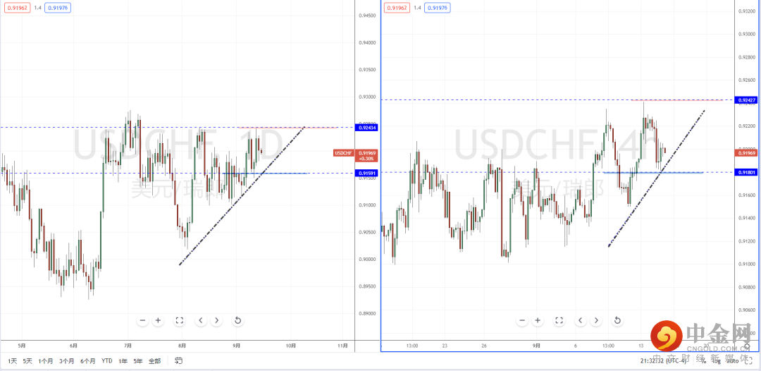 美瑞天图:目前行情继续在上方水平压制带0.92434附近承压受阻,虽然整体趋势处于偏多,下方有上升趋势线的支撑作用。但短期价格有将继续回落测试的表现,从日内4小时级别,可适当关注价格测试下方支撑带0.91801附近的状态。如果起稳,可适当关注短线多头机会,上方目标位置参考0.92427附近。反之,将,继续破位下行测试。