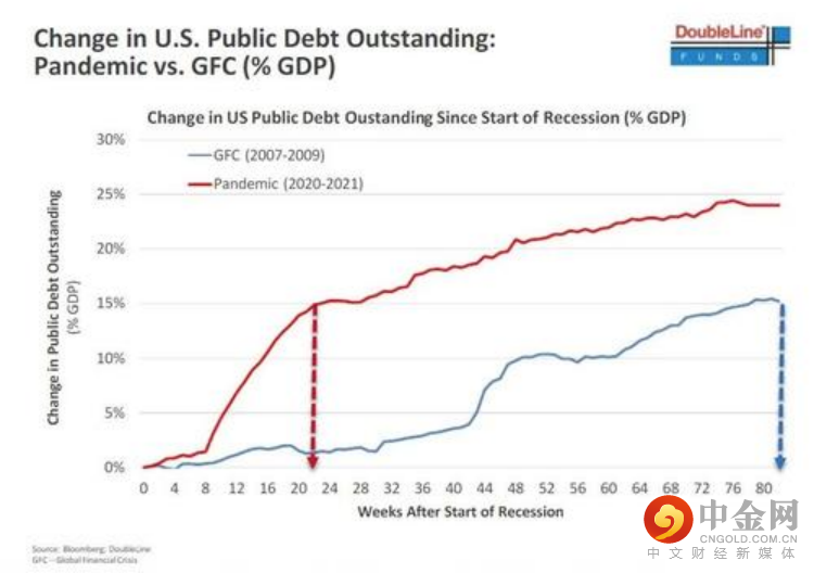 “新债王”特别指出,政府本次经济刺激政策的实施仅用了20周,而2008年全球金融危机时,刺激政策的实施却长达80周……