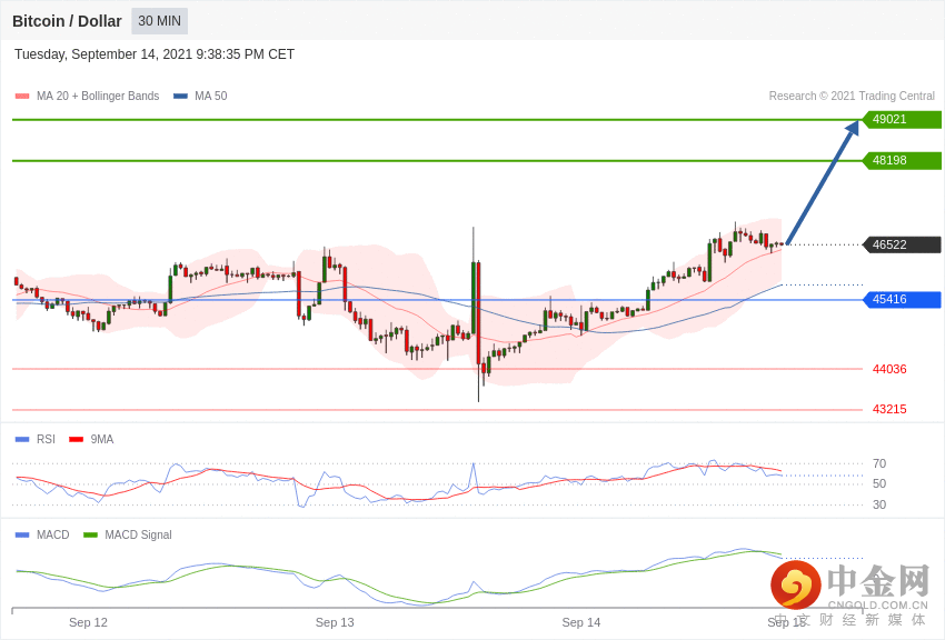 | 技术点评 | RSI技术指标大于中性区域50。MACD技术指标呈现看多状态并 处在其信号线的下方。此外,价位处在其20天及50天移动平均线上方 ( 当前是 46423 和 45718 )。 |