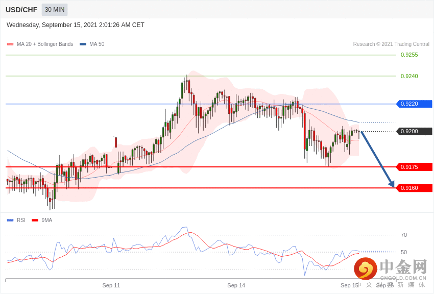 | 技术点评 | 只要依旧存在0.9220阻力位,价格波动存在看跌的趋势。 |