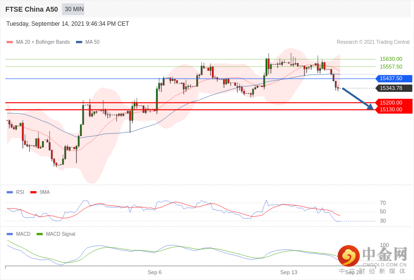 | 如突破 15437.50 ,FTSE China A50 index 目标方向为 15557.50 和 15630 。 | |