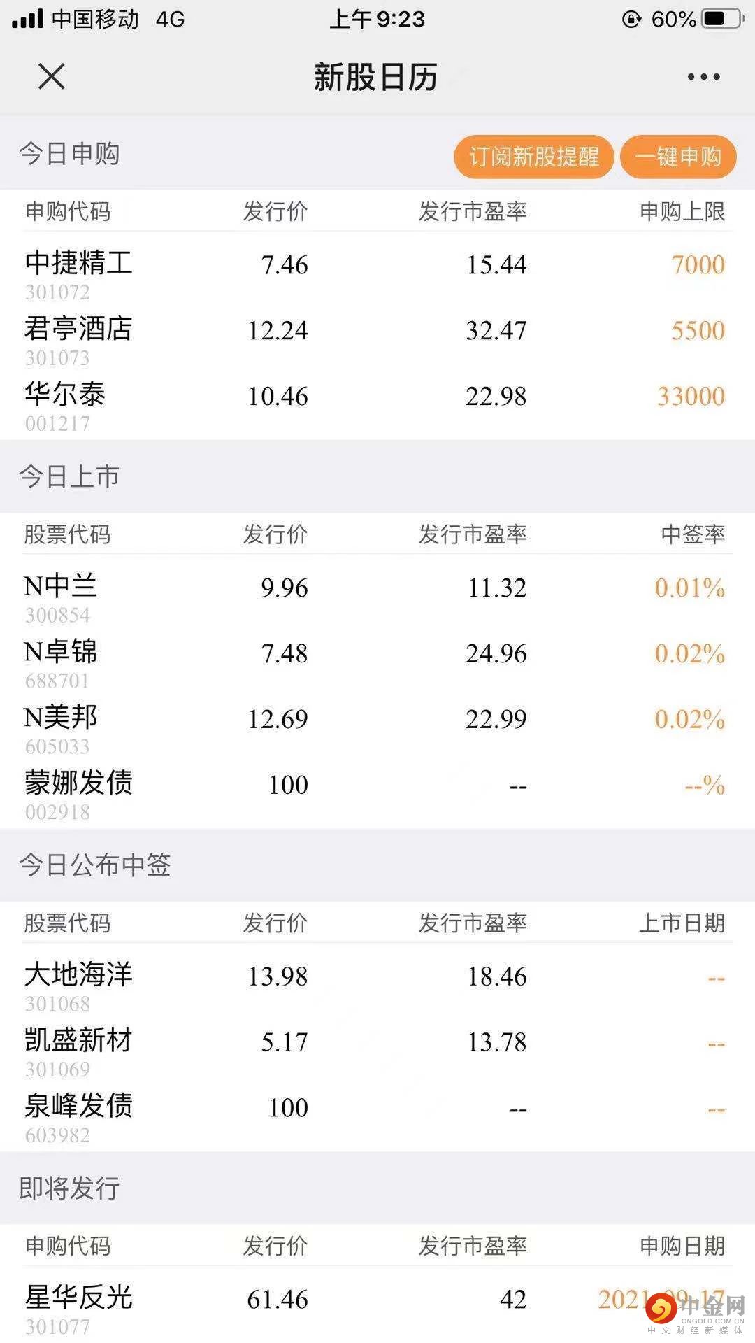 3、绝不错过任何机会!申购提醒、系统日历提醒、中签上市提醒、中签自动加入自选。