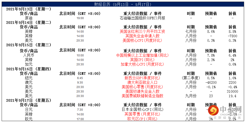 周三,美元指数下跌0.19%,主要是因为非农就业和CPI数据疲软似乎削弱了对美联储的预期。今晚20:30,将公布美国至9月11日当周初请失业金人数,前值为31万人;同时公布的还有美国8月零售销售月率,预期值为-0.7%,前值为-1.1%。整体来看,预计美元中长线仍为偏强结构,短线调整或许还将继续。