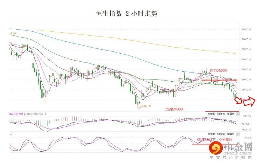周三,港股连续三日下挫,恒指收跌近1.9%,一度失守25000关口,抗疫概念、内房股午后走低,电力设备股、风电股表现强劲。美股方面,创下近三周最大涨幅,投资者对经济增长放缓的担忧出现缓解。能源股推动标普500指数上涨0.9%,八个交易日来第二次收于前收盘位上方;纳斯达克100指数一周多来首次走高。因此,短线预计港股的压力或减轻。