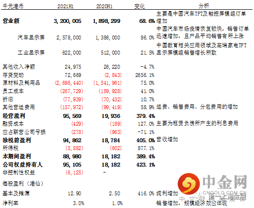 上半年公司汽车显示屏业务获得可观增长,车载TFT模组及触控屏产品收入占比由2018年的75%上升至2021年上半年的81%,主要是中国汽车需求一直保持稳定增长。随着疫情逐步恢复,公司在手用于传统汽车和新能源汽车的中国TFT及触控屏模组订单将开始批量销售,预期公司下半年将继续维持较高的增长势头。