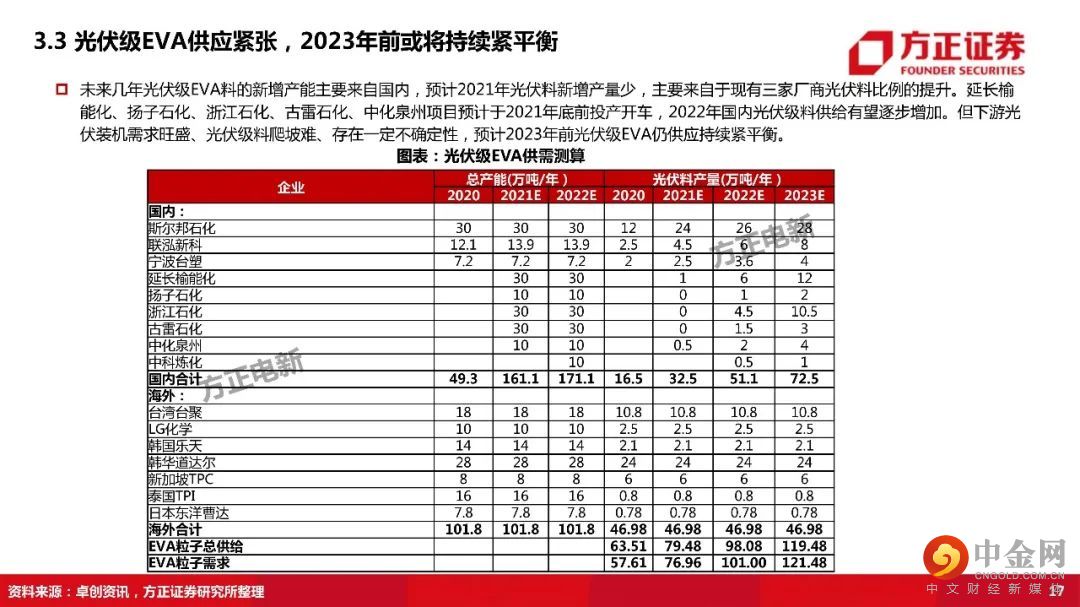 以上为报告部分内容,完整报告请查看《碳中和下光伏高度景气,EVA粒子供需紧平衡》。
