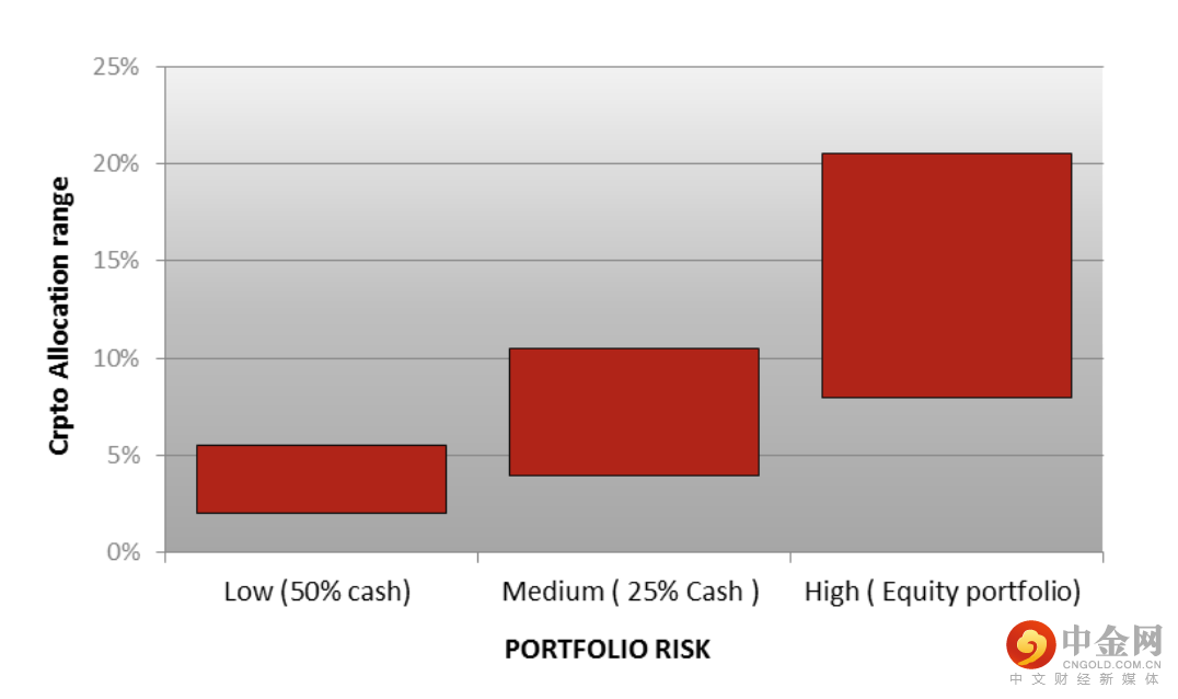 总体而言,配置2-5%的加密资产为低风险投资组合的明智投资,而在高风险模型中,配置可以增加多达8-20%。