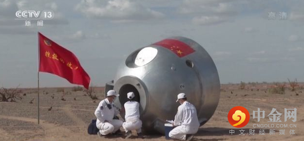 精准降落后,搜救人员跑向返回舱