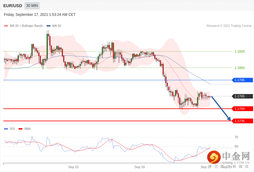 | 技术点评 | 只要1.1785阻力位不被突破,向下跌破1.1750位置的风险很高。 |
