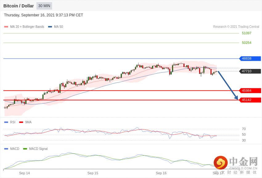 | 向上突破 48838 ,将带来继续上行的趋势,目标位定在 50254 和 51097 。 | |