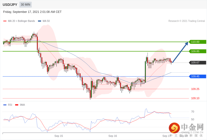 | 交易策略 | 在 109.45 之上,看涨,目标价位为 109.85 ,然后为 110.00 。 |