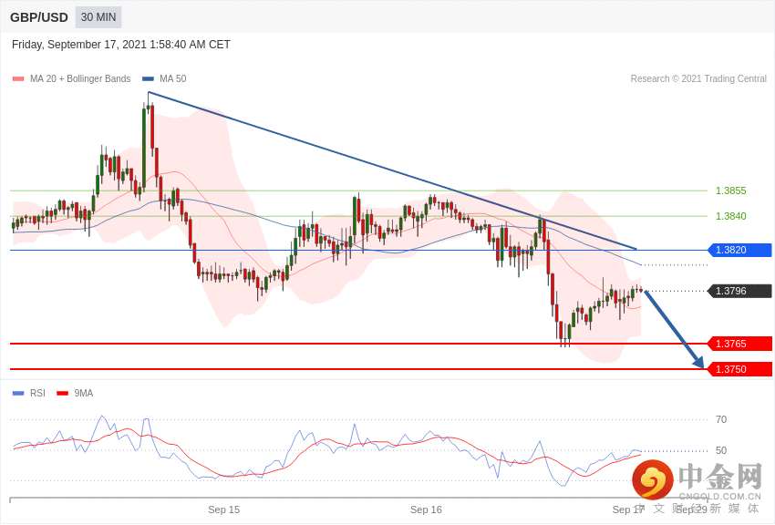 | 技术点评 | 只要依旧存在1.3820阻力位,价格波动存在看跌的趋势。 |