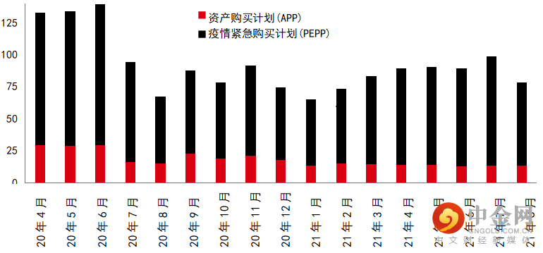 图1:欧洲央行的每月净公开购买规模(十亿欧元)