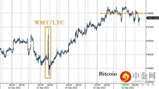 比特币(BTC)在欧股盘前曾涨破4.85万美元继续刷新9月7日上周二以来新高,到欧美交易时段徘徊4.8万美元上下,美股早盘一度跌破4.73万美元,午盘曾重上4.8万美元,美股收盘时处于4.8万美元下方,最近24小时跌超1%,美股收盘后一度逼近4.7万美元关口刷新日低,较日内高位跌超1000美元,百分比跌幅超过3%。