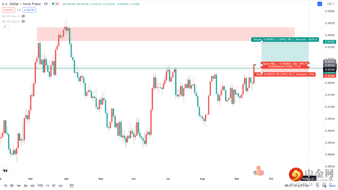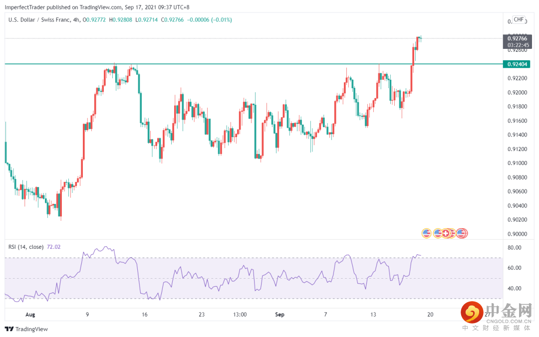 行情回顾——周四,伴随着美国数据的改善,美元指数进一步走高,美元对瑞郎也延续了先前的强势,进一步突破7月初的高点,并创出自4月份以来的新高。