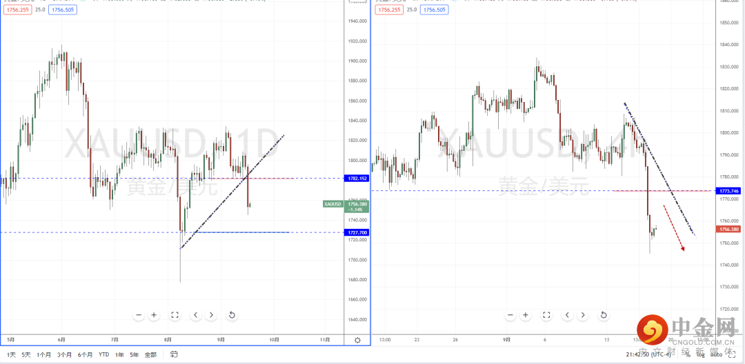 黄金天图:目前整体趋势处于在空头阶段中,短期价格坚决跌破水平支撑带1782.152附近,同时也跌破上升趋势线的支撑作用。从日内4小时级别,由于趋势下行幅度较大,不宜追空行情。可适当关注价格回测上方压制后再次受阻下行的空头机会,下方目标位置参考1727.700一带。