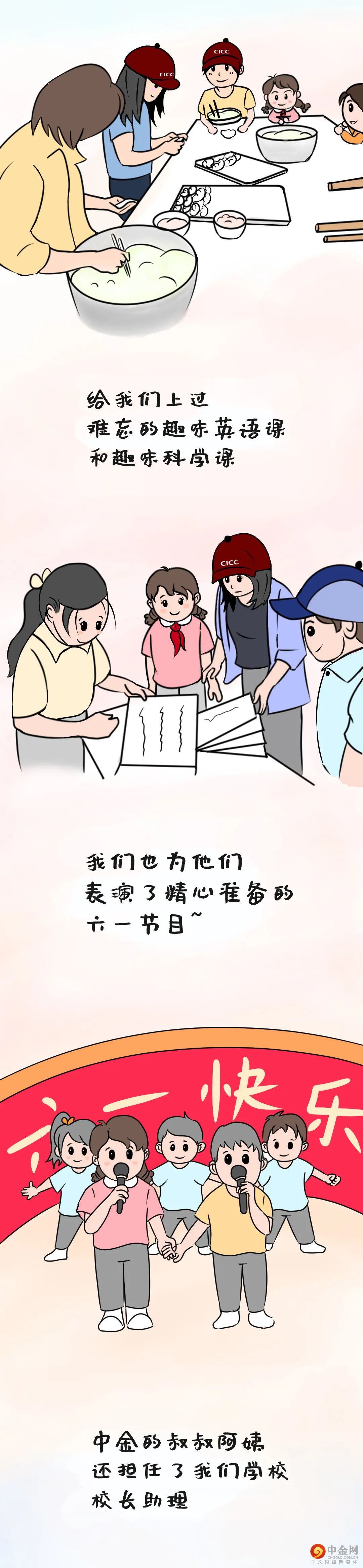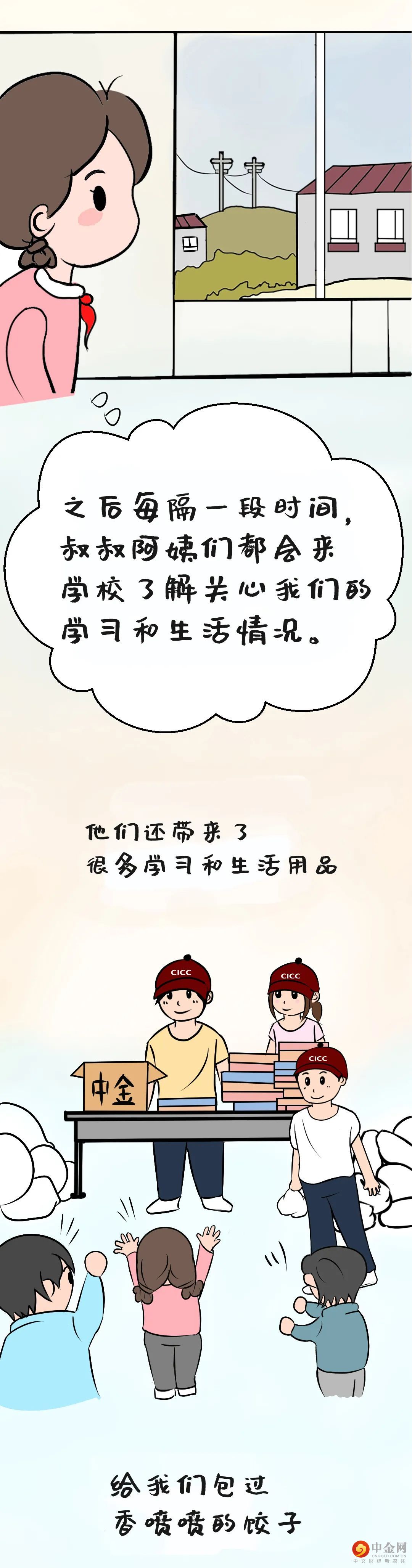 中金叔叔阿姨们非常有爱心,而且乐于助人,非常感谢他们。我要刻苦学习,把今天的感动转化为学习的动力,今后变得更加有能力可以帮助别人。