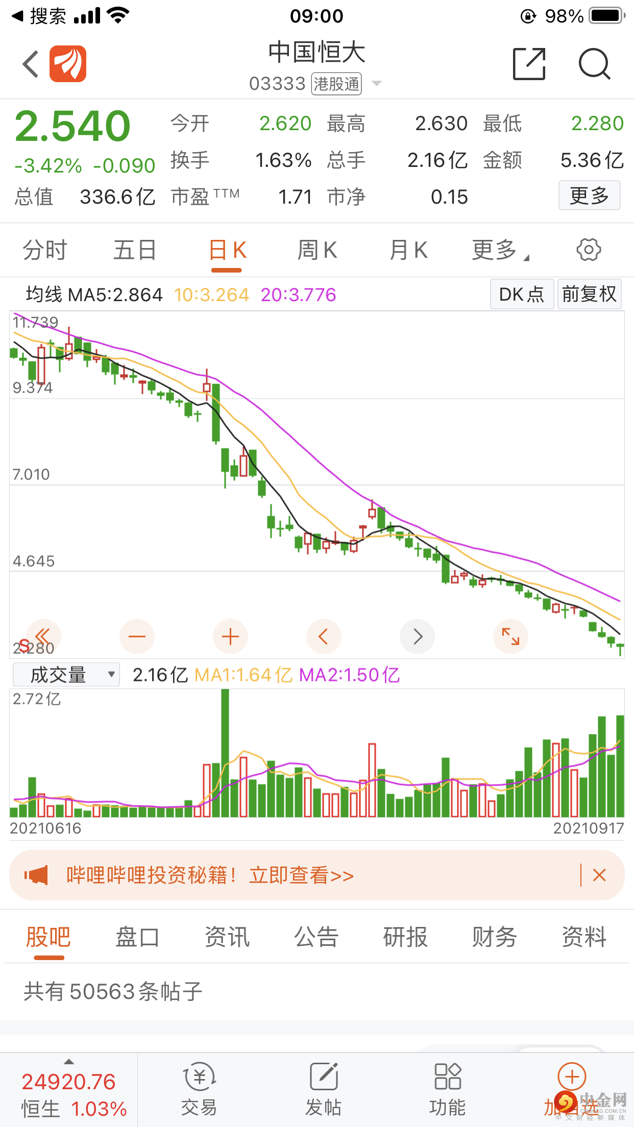 今年2月以来,恒大系股票遭遇重挫。截至9月17日,中国恒大收于2.54港元/股,今年以来下跌82.67%,市值336.6亿港元;恒大汽车收于2.98港元/股,今年以来下跌90.13%,市值291.1亿港元;恒大物业收于4.6港元/股,今年以来下跌48.55%。