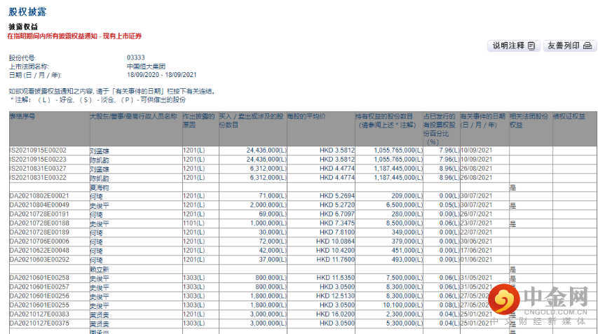 在舆情和股价下挫压力之下,许家印“朋友圈”香港富豪刘銮雄夫妇也在日前进行了减持。