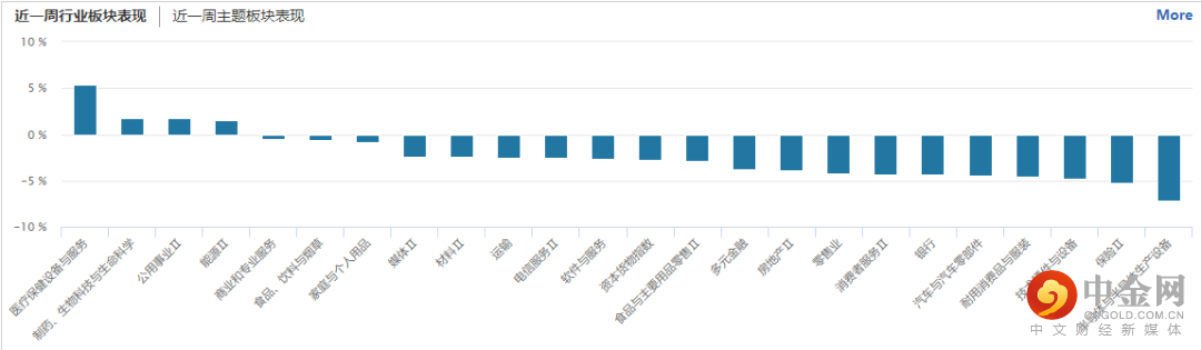 从行业板块表现来看,本周仅医疗保健、制药、公用事业、能源等四个行业板块微幅收涨,技术硬件与设备、保险、半导体等板块跌幅居前。从上述涨跌行业分布看,本周市场操作难度较大,赚钱效应较差。(见图2)
