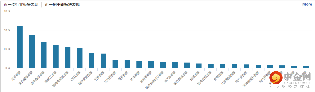 从概念板块涨幅来看,本周风力发电、锂电负极、磷化工、电解液、CRO等五个概念板块涨超10%,形成了一定的板块效应。(见图3)