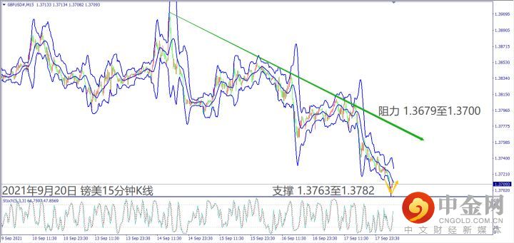 日级别线图,对称三角形整理,守住趋势线支撑,有机会重回涨势;15分钟K线,短线处于震荡走跌,反弹若突破下降趋势线,大有可能挑战上方阻力。