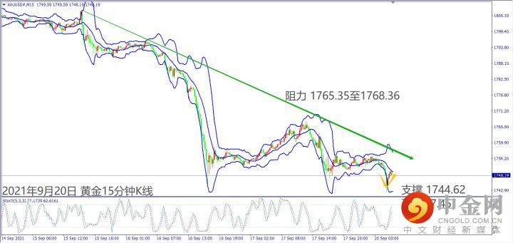 日级别线图,出现十字星反转,守住1750美元,有机会挑战5日均线;15分钟K线,早上出现V型反转,一旦突破下降趋势线,大有可能挑战前高阻力。