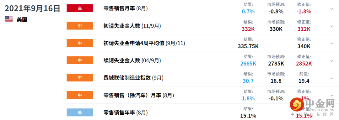 周四,美国人口普查局(USCensusBureau)公布的零售数据大幅超出预期,美国8月份零售额增长0.7%,市场预期-0.8%。强劲的数据恢复了对美国经济复苏复苏的乐观情绪,并使美元继续上涨。