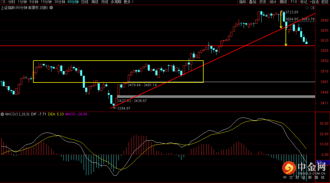 大盘出现日线macd出现绿柱调整,短期重点关注下方3542到3578的区间支撑,如果出现跌破则后续调整可能出现扩张走势,而上方则需要观察五天线是否能够重新站上,在没有重新站上五天线之前短期的上涨大概率只是一个反弹。