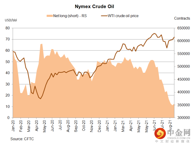 根据CFTC交易商承诺报告,截至9月15日当周(注:数据截止至9月11日),原油期货净多头增加5906份合约,至355064份。尽管飓风“尼古拉斯”已经消退,但对美国海湾地区原油产量的影响可能需要一段时间才能恢复。