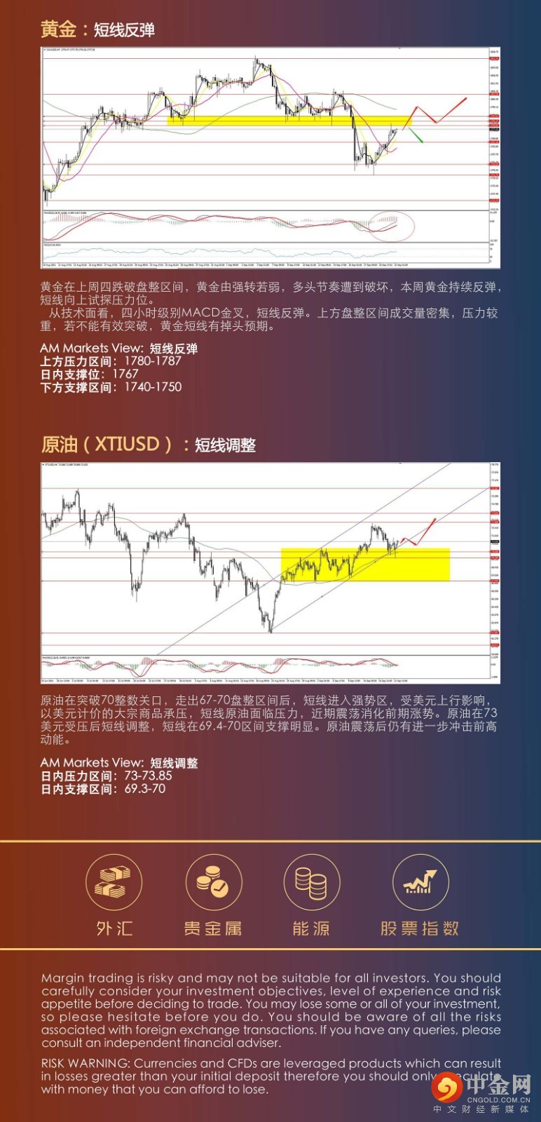 近期美元指数在美联储利率决议前表现强势,市场对美联储缩债预期越来越强,非美货币震荡下行。周四凌晨即将迎来美联储利率决议,本次决议将给与市场带来更多指引,将决定下一步市场基调。从市场表现上看,美联储在九月份有缩债预期,若美联储有表示当前经济环境不适合缩表,时间周期推迟至年底,大概将终结近期美元的涨势,美元指数在一定时间内将陷于调整。若美联储开始执行缩表策略,美元指数仍有冲高动能。非美货币走势,短线上将受到美元走势影响。 黄金在上周跌破盘整区间后,本周迎来反弹,向上测试压力位。原油在73美元受压后短线调整,短线在69.4-70区间支撑明显。比特币近两个交易日调整较深,本周跌幅达近万美元,周三早盘在跌破4W美元后小幅反弹。