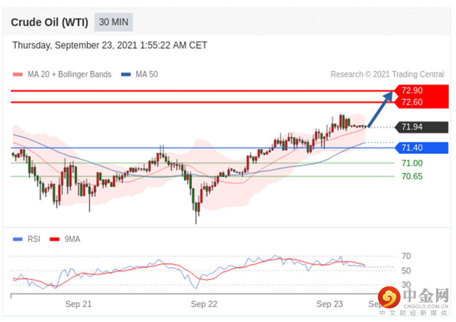 在 71.40 之上,看涨,目标价位为 72.60 ,然后为 72.90 。