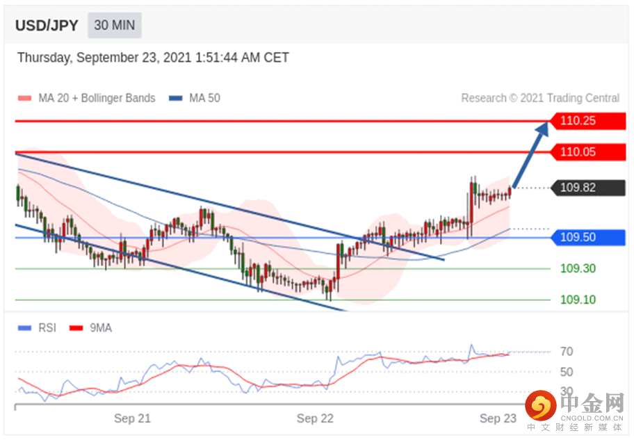 在 109.50 之上,看涨,目标价位为 110.05 ,然后为 110.25 。