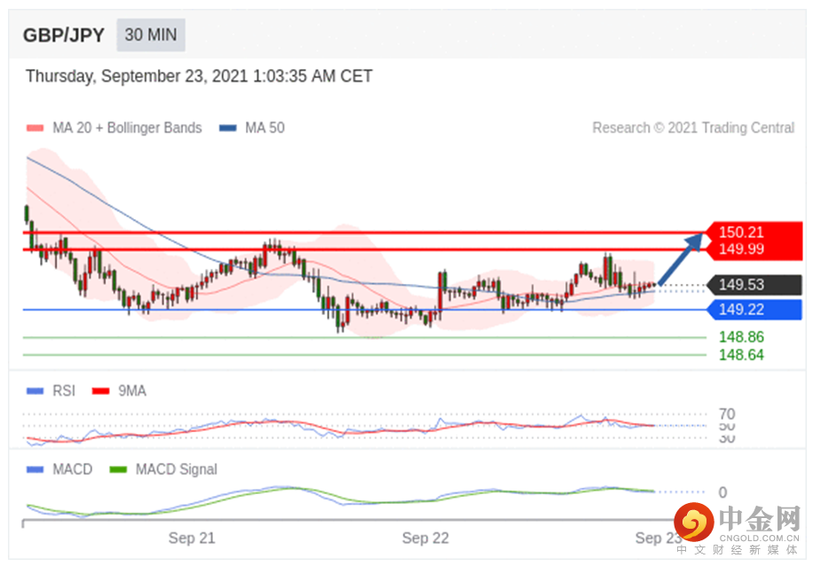 看涨,当 149.22 为支撑位,目标定在150.21。