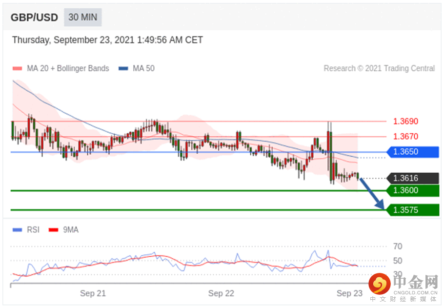 在 1.3650 之下,看跌,目标价位为 1.3600 ,然后为 1.3575 。