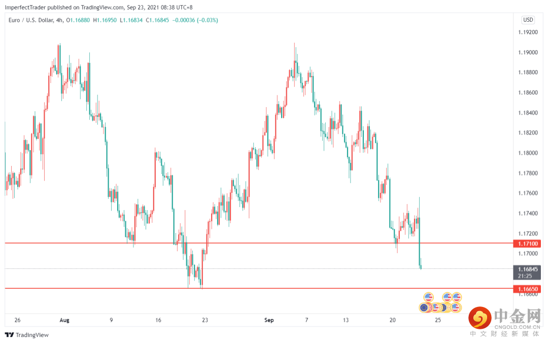 欧元兑美元在经历大幅震荡后持续走低,逐步逼近8月末的低点区域1.16600-1.16700。