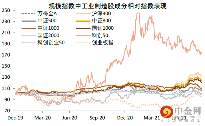 今年以来代表大市值公司的沪深300明显跑输,而代表中小市值的中证500、中证1000年初至今收益一度超过20%,近期“专精特新”等政策也进一步引发了市场对于中小市值股票的关注。在此之前,沪深300相对中证1000的跑赢幅度已经持续多年增加,显示A股市场中市值较大、成交量较高的300只股票已经持续多年的跑赢中小市值股票。但我们认为许多投资者认为A股市场出现了从“大市值”向“中小市值”的风格轮换的判断可能并不准确,而更多是在A股市场赛道风格切换的过程中,由规模指数间行业分布偏差造成的“错觉”。当前A股市场机构化、头部化的趋势仍然在持续中,而小市值企业面临的投研资源配置不足、流动性容量有限的问题仍然存在,机构投资者可能仍然会青睐相对市值较大、基本面更为优质的各行业龙头,过往“炒小”的风格可能较难重现。