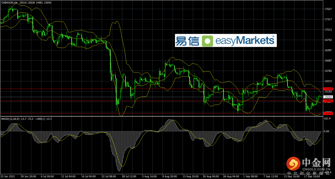 技术看,A50支撑是14900附近,破位看14500附近,上方压力是15250附近,突破看15500附近。指标看布林线开口横盘,MACD 处于低位反弹,鉴于上方位置重要性,可以尝试高抛低吸,突破则反手追单。