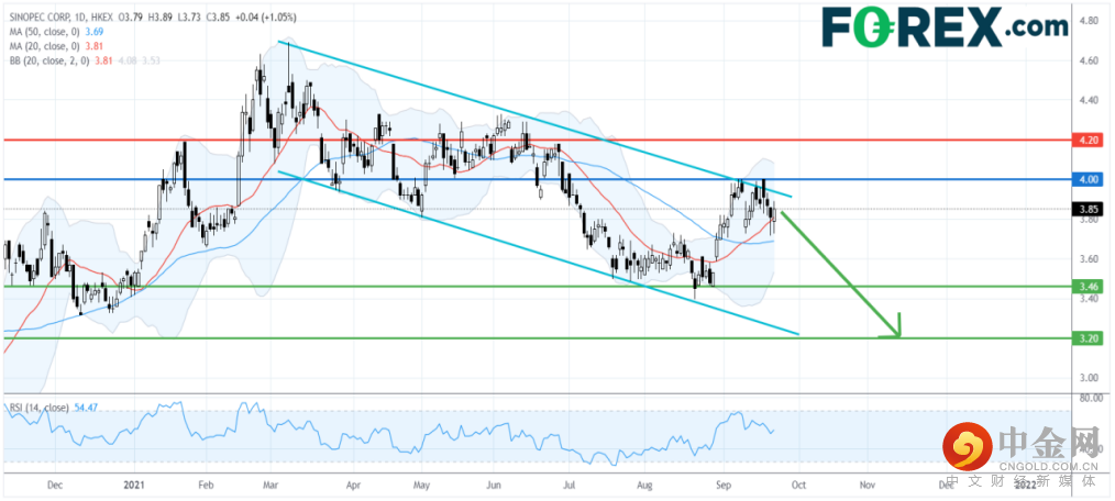 从技术角度看,如日线图所示,近来中石化的反弹走势较为受到抑制。事实上,它到达3月以来的下降通道的顶部后回落,可能形成了一个较低的顶部。