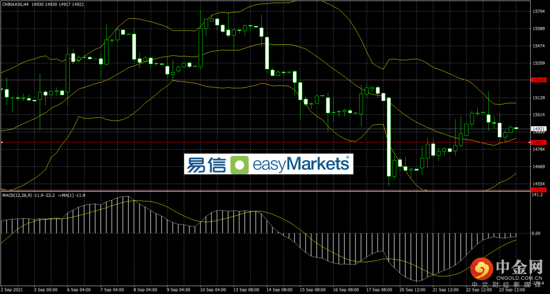 技术看,A50支撑是14850附近,破位看14700附近,上方压力是15100附近,突破看15250附近。指标看布林线开口横盘,MACD 处于0轴附近徘徊,鉴于上下方位置重要性,可以尝试高抛低吸,突破则反手追单。